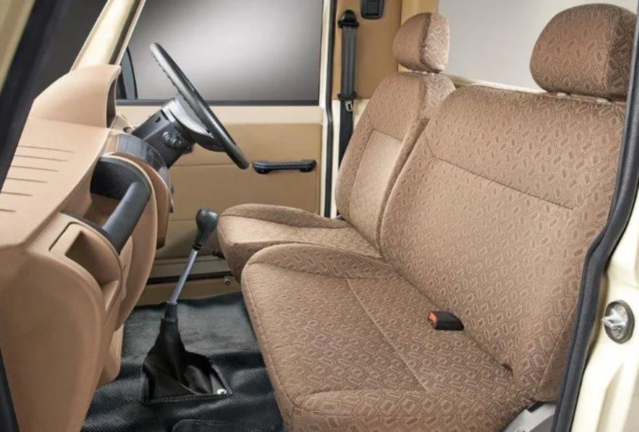 The cabin is ergonomically designed for comfort during long drives, featuring adjustable seats, ample legroom, and a well-laid-out dashboard. The vehicle’s strong chassis frame enhances stability, while features such as power steering, digital instrument cluster, and optional air conditioning improve comfort and easeof-use.
