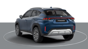Bold and Sporty Design โ The coupe-like sloping roofline, LED DRLs, and signature grille give the FRONX a modern, eye-catching look.